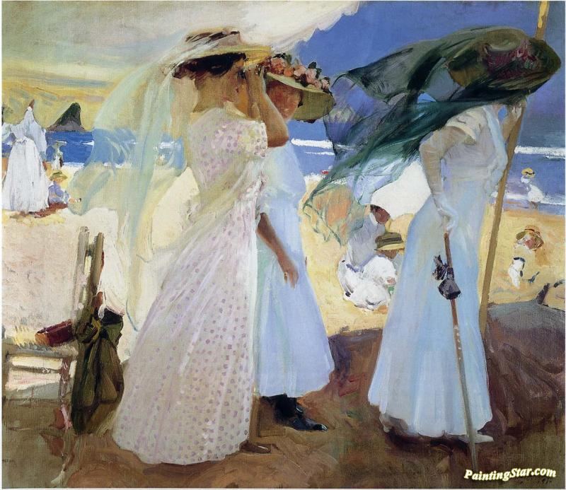 Under the awning, Zarauz, Art Painting by Joaquin Sorolla y Bastida