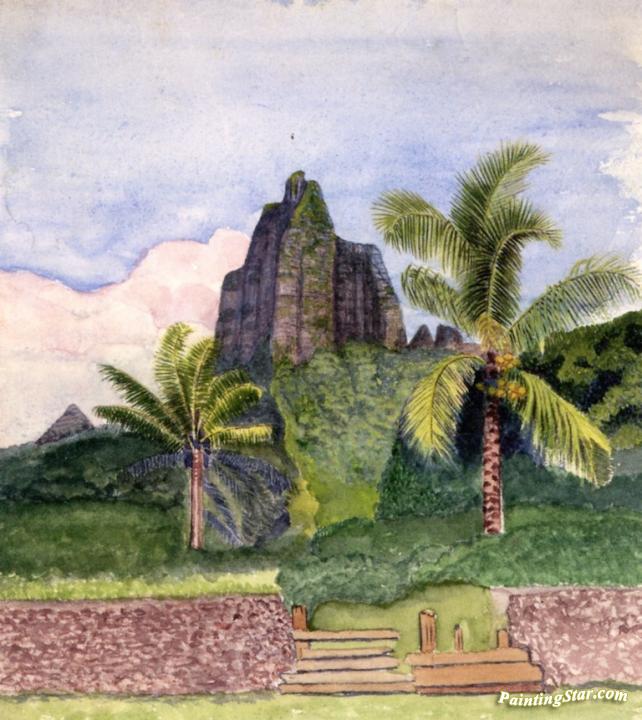 Unidentified Landscape with Two Palm Trees, Art Painting by John La Farge