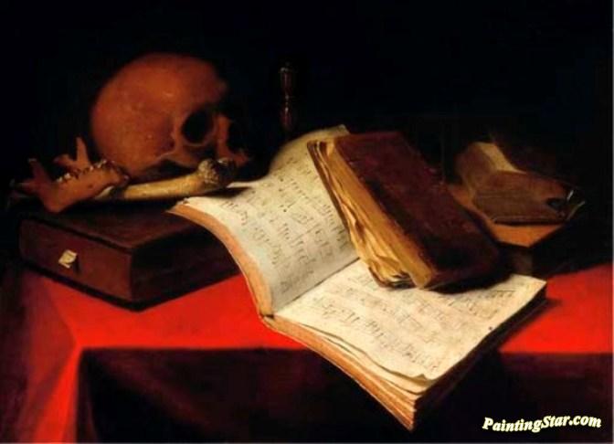Vanitas with Music Sheets, an Hourglass and a Skull, Art Painting by Madeleine Boullogne