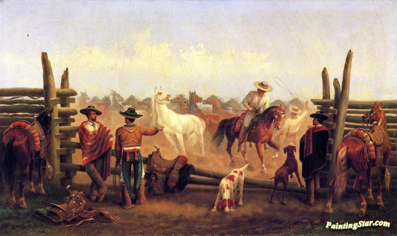 Vaqueros In A Horse Corral, Art Painting by James Walker