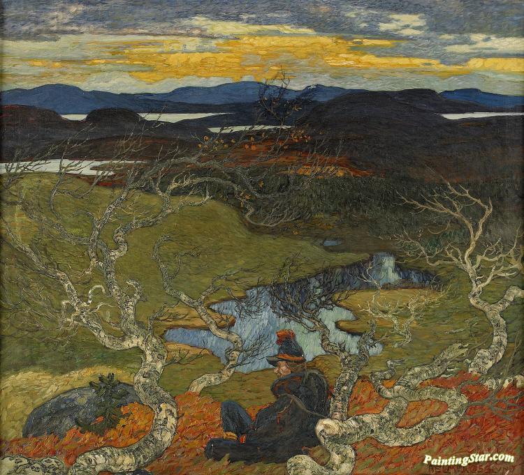 Varafton Bakom Kiruna, Art Painting by Helmer Osslund
