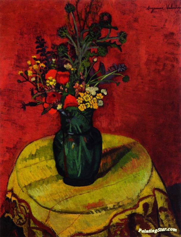 Vase Of Flowers On A Table, Art Painting by Suzanne Valadon