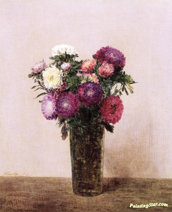 Vase of Flowers: Queens Daisies, Art Painting by Henri Fantin-Latour