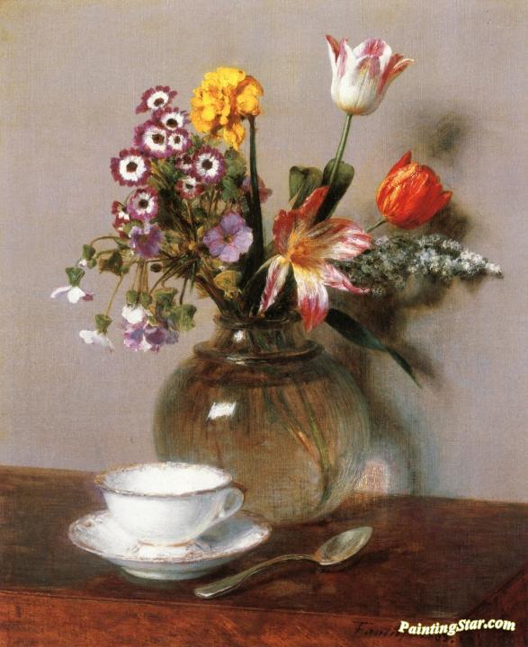 Vase of Flowers with a Coffee Cup, Art Painting by Henri Fantin-Latour