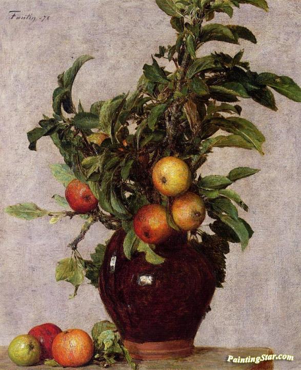 Vase with Apples and Foliage, Art Painting by Henri Fantin-Latour