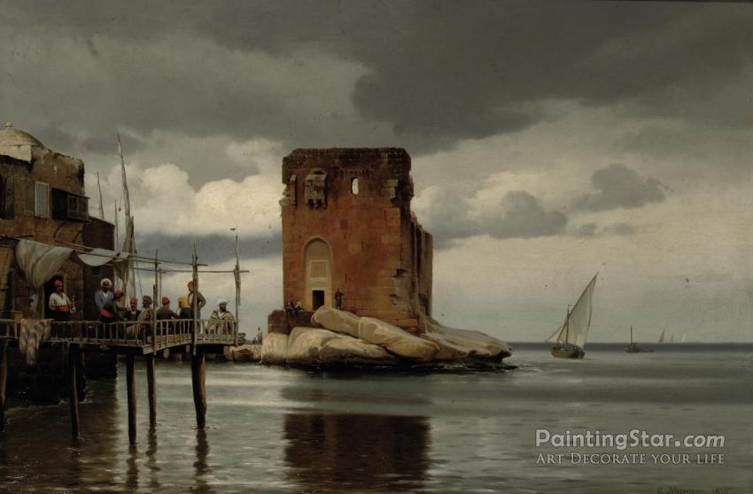 Ved Tolboden I Beyroeth: Scene Of A Harbour With A Toll Port, Beirut, 1875, Art Painting by Carl Johann Neumann
