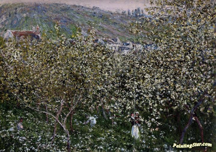 Vetheuil, Flowering Plum Trees, Art Painting by Claude Oscar Monet