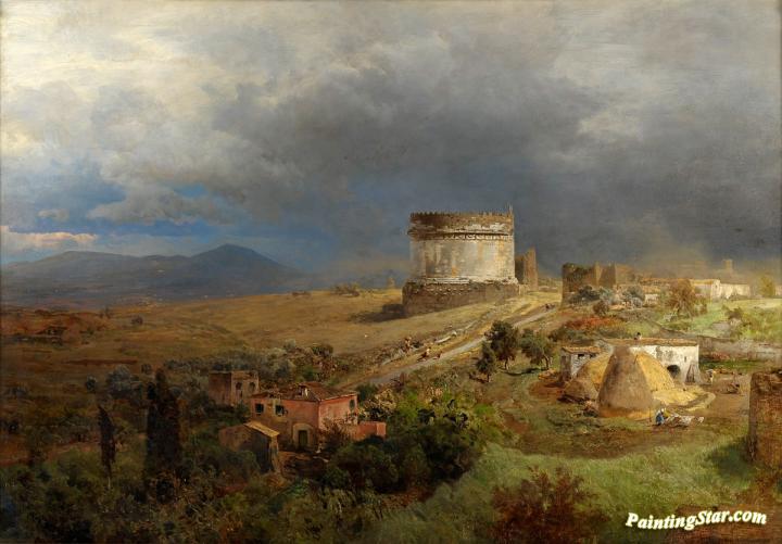 Via Appia With The Tomb Of Cecilia Metella, Art Painting by Oswald Achenbach