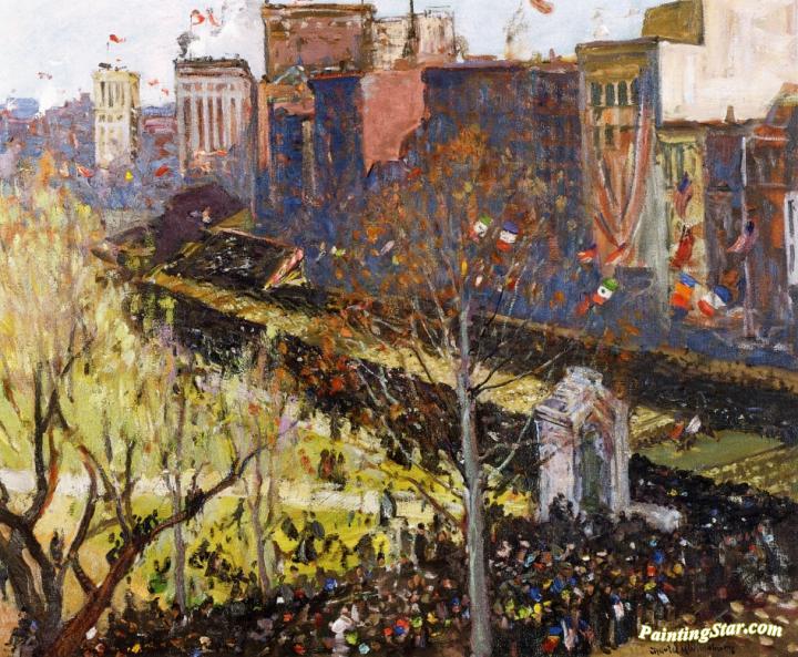 Victory Parade, Boston, April 25, 1919, Art Painting by Charles H. Woodbury