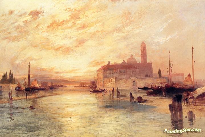 View at Sunset, Art Painting by Thomas Moran