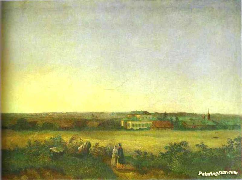 View In The Vicinity Of Moscow With A Mansion And Two Female Figures, Art Painting by Alexei Kondratevich Savrasov