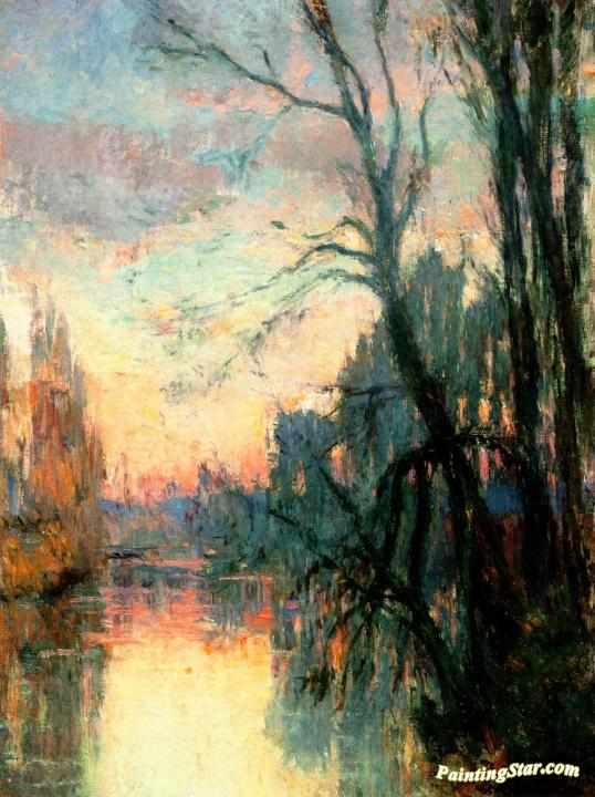 View Of A River With Trees At Sunset, Art Painting by Albert Lebourg