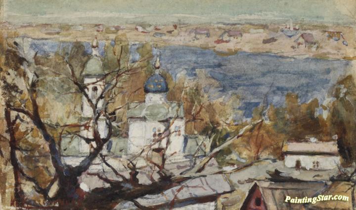 View of a Seaside Town, Art Painting by Stepan Kolesnikov