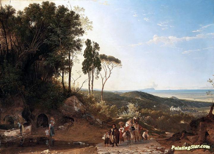 View of Ariccia with the Sea in the Background, Art Painting by Franz Ludwig Catel