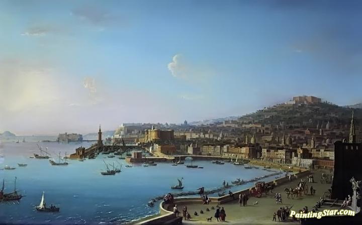View of Naples with the Castel Nuovo, Art Painting by Antonio Joli