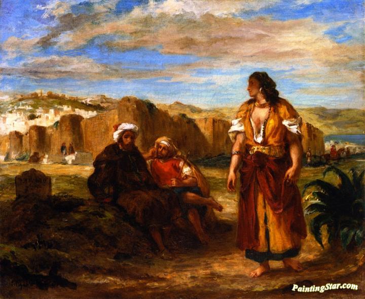 View of Tangier with Two Seated Arabs, Art Painting by Eugène Delacroix