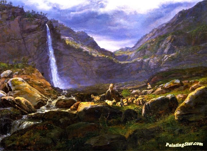 View of the Feigumfoss in Lysterfjord, Art Painting by Johan Christian Dahl