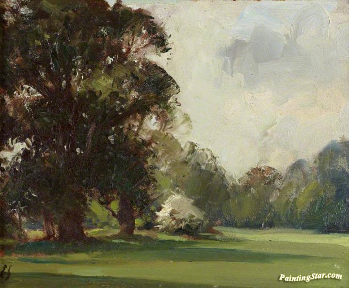 View of the Gardens at Anglesey Abbey: The South Lawn with Elm Trees, Art Painting by Edward Brian Seago