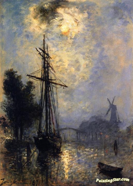 View of the Port of Overschie, Art Painting by Johan Berthold Jongkind