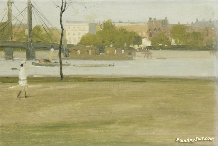 View Of The Thames And The Albert Bridge From Battersea Park, Art Painting by Herbert James Gunn