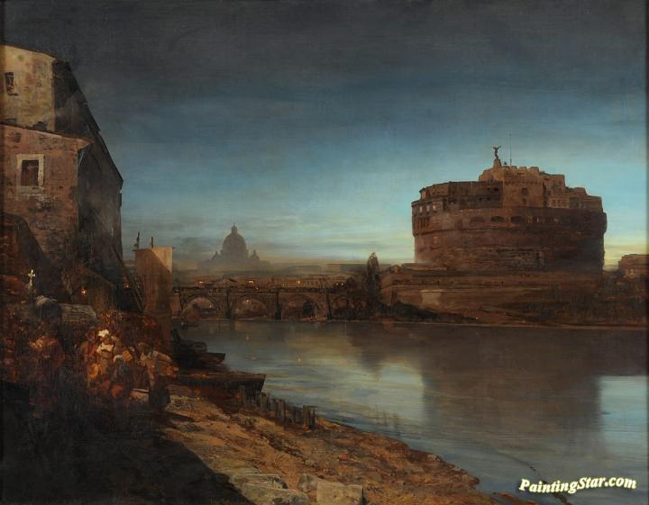 View of the Tiber and Castel Sant'Angelo, Art Painting by Oswald Achenbach