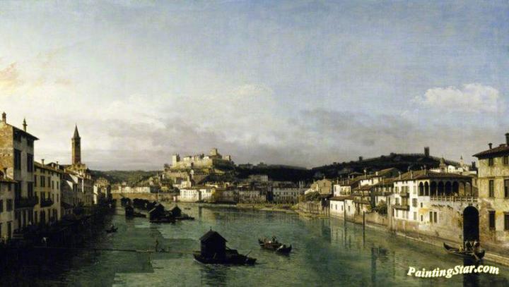 View of Verona from the Ponte Nuovo, Art Painting by Bernardo Bellotto