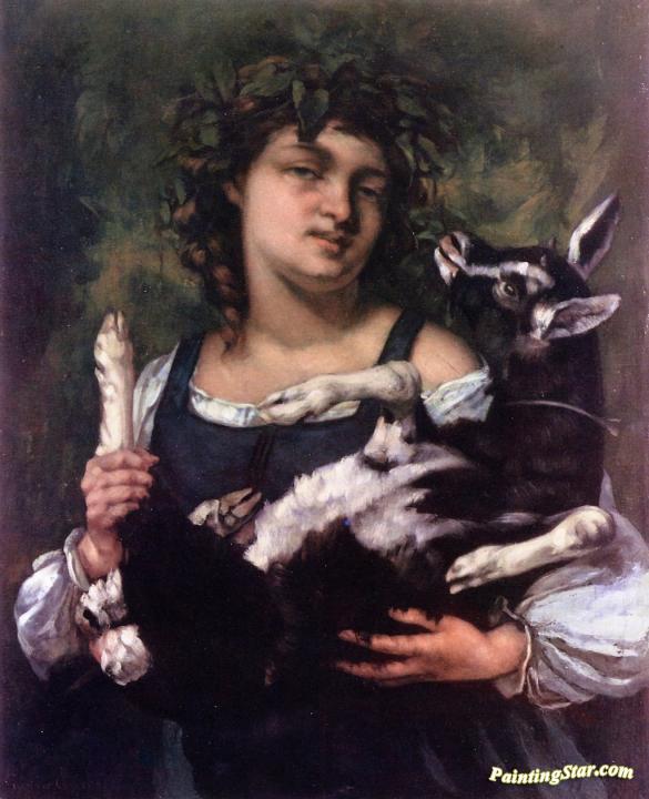 Village Girl with Kid, Art Painting by Gustave Courbet