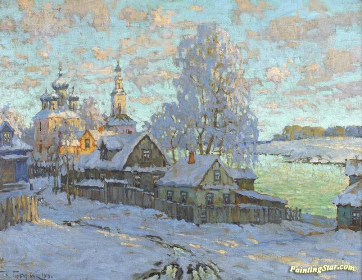 Village In The Winter Sun, Art Painting by Konstantin Gorbatov