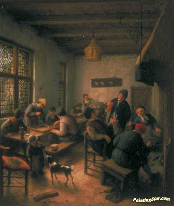 Village Inn With Tric-trac Or Backgammon Players And Card Players, Art Painting by Adriaen van Ostade
