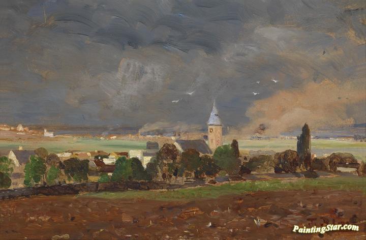 Village landscape before storm, Art Painting by Tina Blau