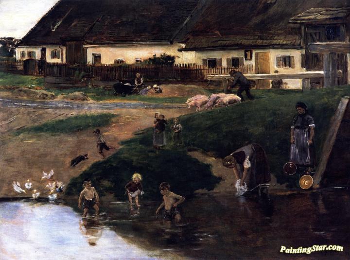 Village Pond in Etzenhauser - Village Idyll, Art Painting by Max Liebermann