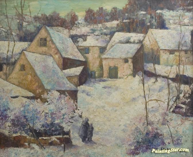 Village snow scene, Art Painting by Victor Charreton