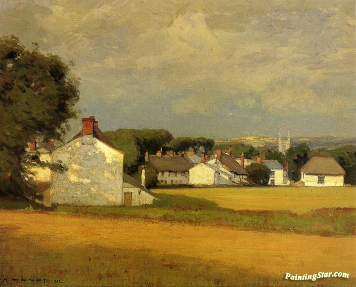 Village With A Church Spire In The Distance, Art Painting by William Wendt