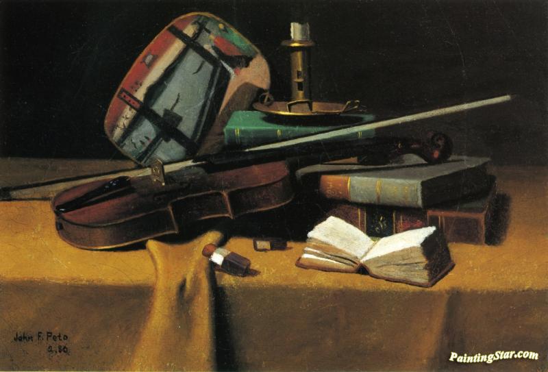 Violin, Fan And Books, Art Painting by John Frederick Peto