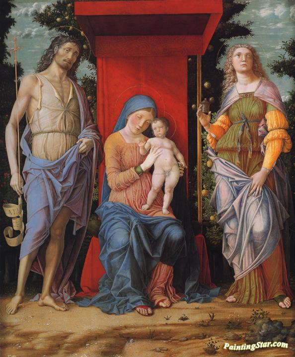 Virgin and Child with the Magdalen and St John the Baptist, Art Painting by Andrea Mantegna