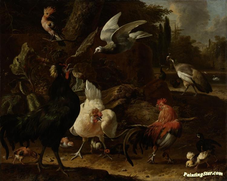 Vogels in een park, Art Painting by Melchior de Hondecoetter