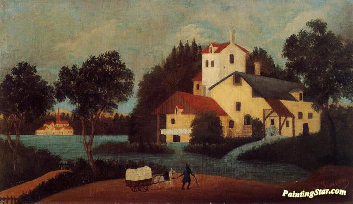 Wagon in Front of the Mill, Art Painting by Henri Rousseau