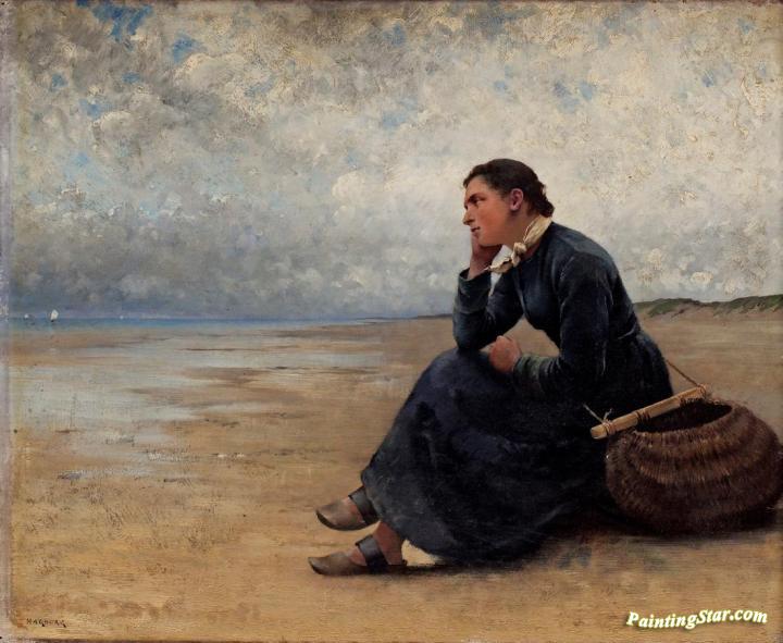 Waiting By The Ocean, Art Painting by August Wilhelm Nikolaus Hagborg