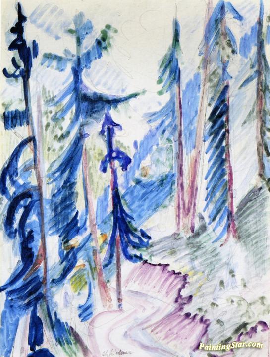 Waldweg, Art Painting by Ernst Ludwig Kirchner