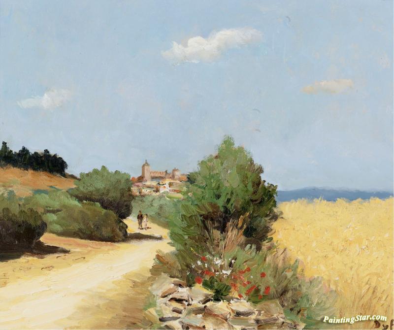 Walking By The Wheatfield, Art Painting by Marcel Dyf
