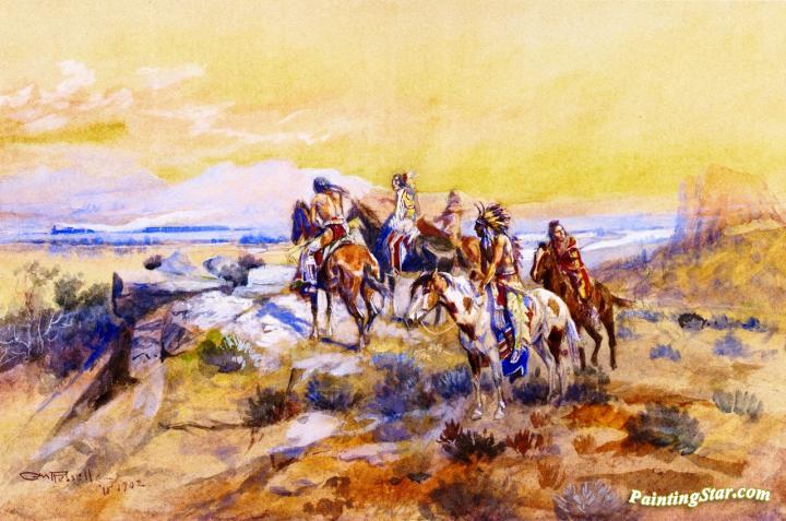 Watching the Iron Horse, Art Painting by Charles Marion Russell