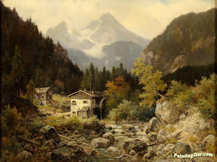 Watermill In The Mountains, Art Painting by Ludwig Sckell