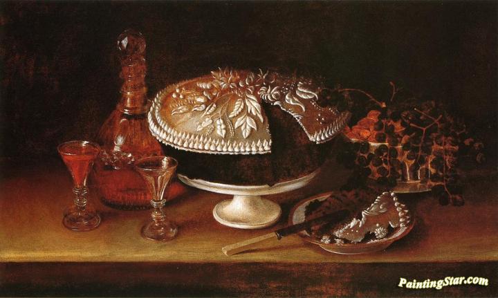 Wedding Cake, Wine, Almonds, and Raisins, Art Painting by Rubens Peale