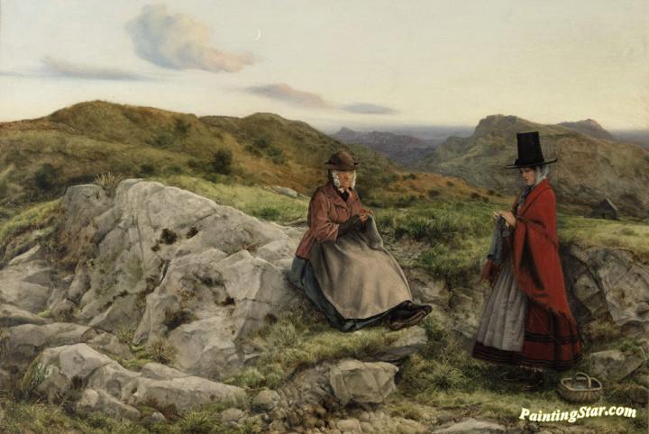 Welsh Landscape with Two Ladies Knitting, Art Painting by William Dyce
