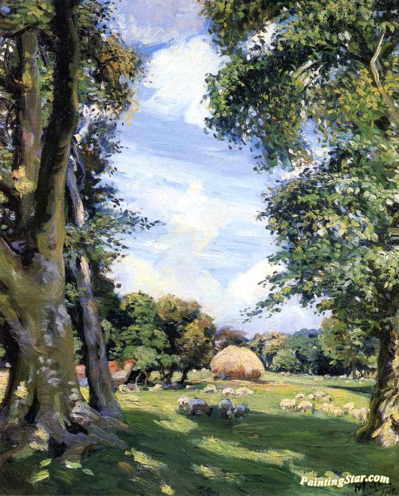 West Burton - Sheep Grazing, England, Art Painting by Wilfred Gabriel De Glehn