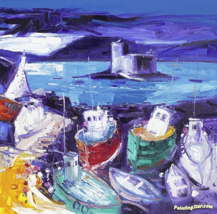 Wet Evening Kismil Castle, Isle of Barra, Art Painting by John Lowrie Morrison