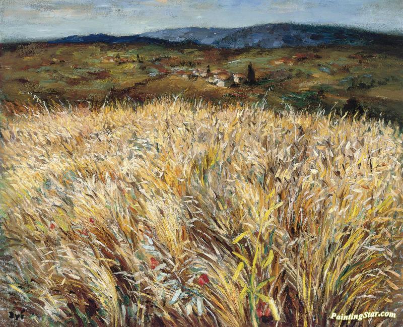 Wheat Field And Village In Provence, Art Painting by Marcel Dyf