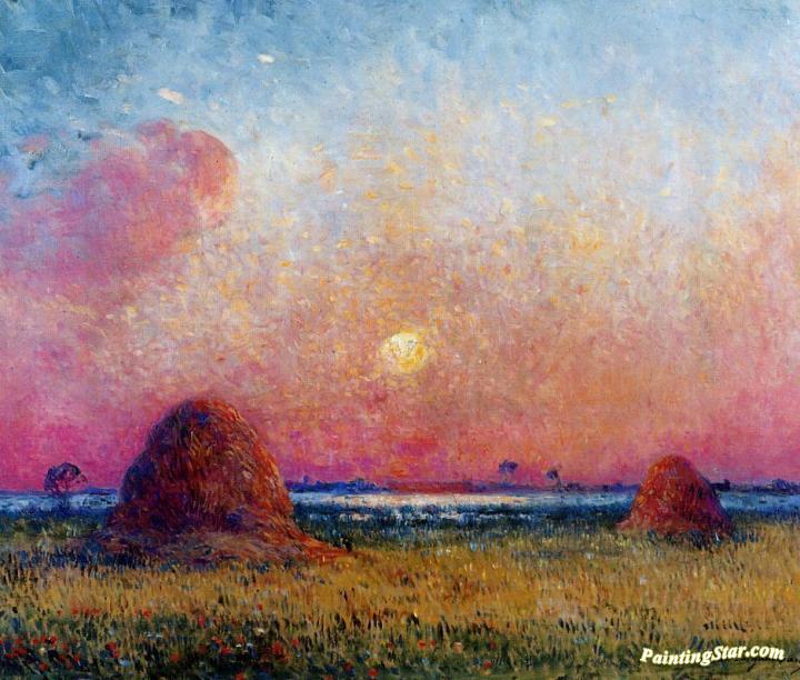 Wheat Stack at Sunset, Art Painting by Ferdinand du Puigaudeau