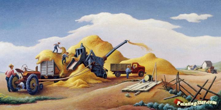 Wheat Threshing On The High Plains, Art Painting by Thomas Hart Benton