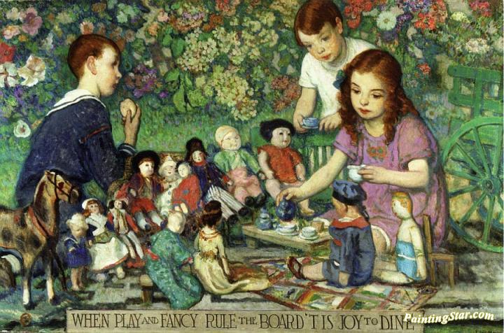 When Play And Fancy Rule The Board 'tis Joy To Dine, Art Painting by Francis Luis Mora